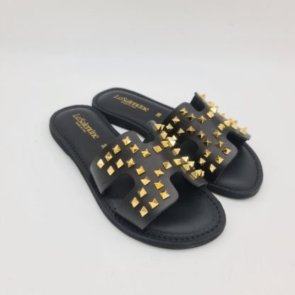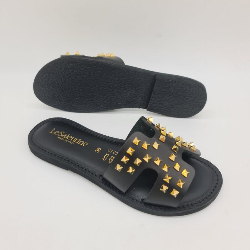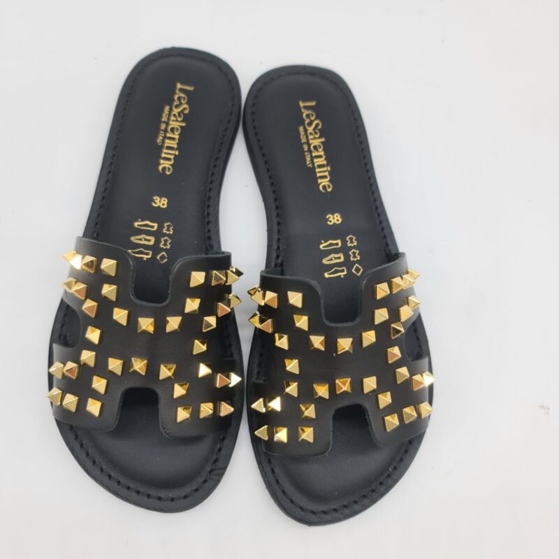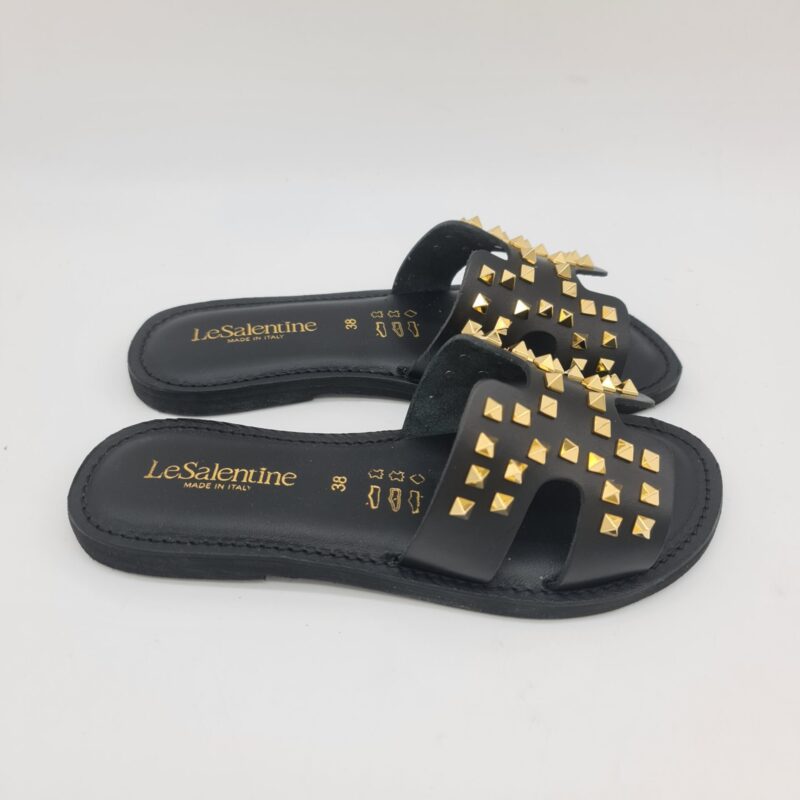 Le Salentine ciabatta donna nera con borchie oro